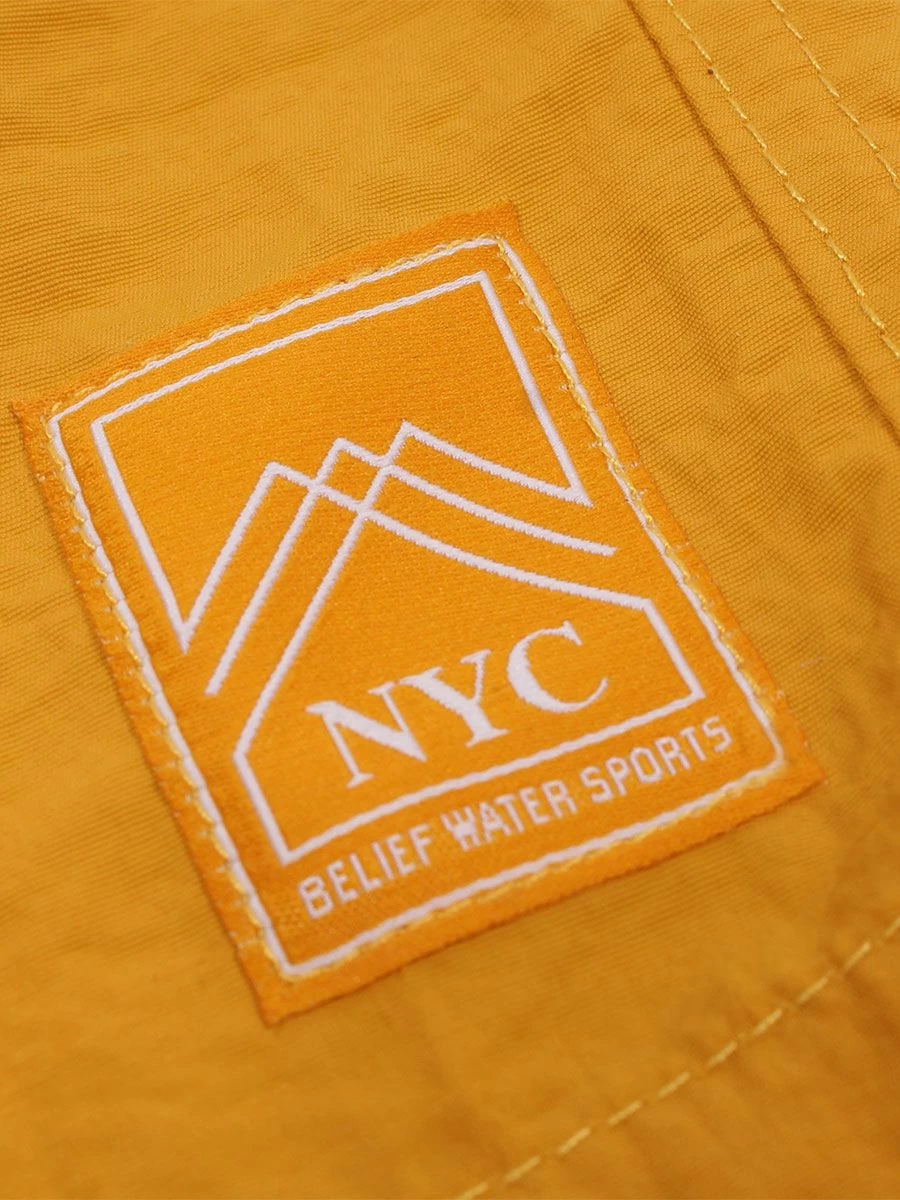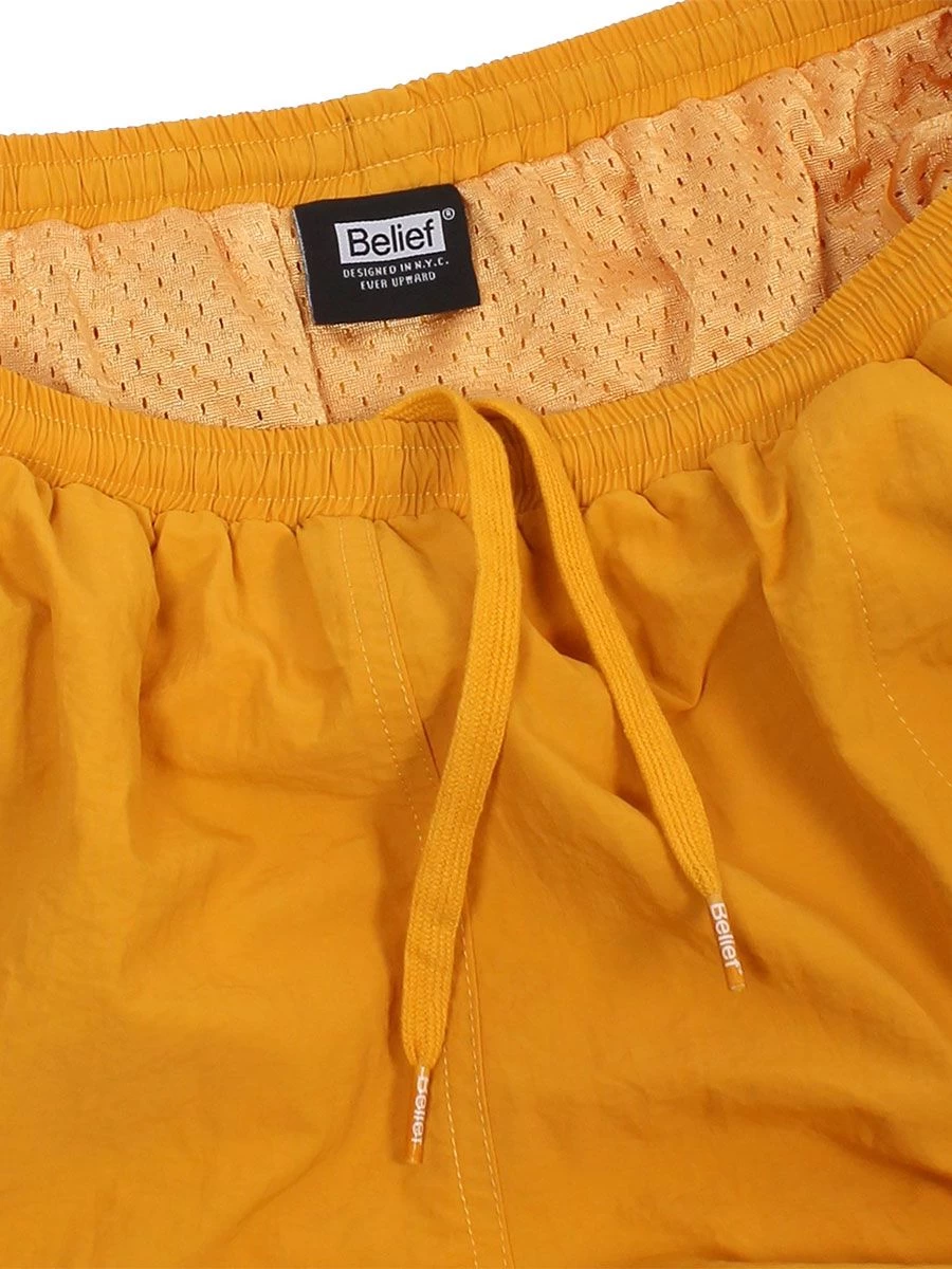Hidden flat drawcord closure at elastic waist with Belief branded cord ends