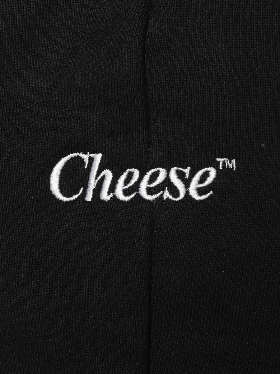 Designed cheese logo symbolising brand on the side