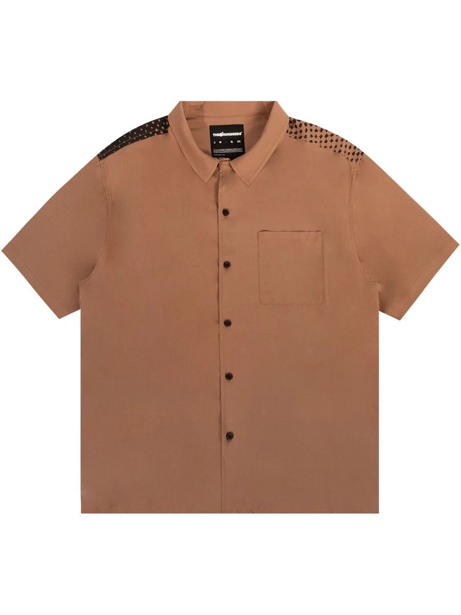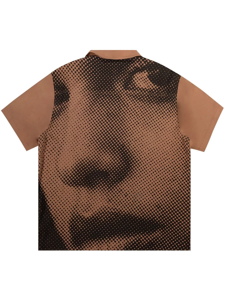 Rayon shirting with engineered allover print on back
